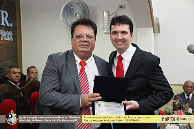 O pastor José Felipe da Silva, representando o pastor presidente, José Wellington Bezerra da Costa esteve na noite de quarta-feira, 27 de maio, na direção do culto na Assembleia de Deus, Ministério do Belém, Sede do Setor 15 - Vila Nhocuné (SP). Na ocasião, por determinação da diretoria da igreja, o pastor Natanael Farina recebeu a responsabilidade de dirigir o Setor.